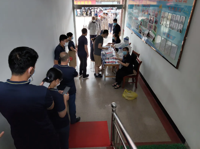 2021年8月7日,莊園街道黨工委考慮到為了讓公司職工們能夠更方便快速地檢測核酸、減少夜間排隊的時間,特意協調防疫部門相關人員專門組建了一支流動核酸檢測隊走進茂源機械為全體職工進行第二次核酸檢測。