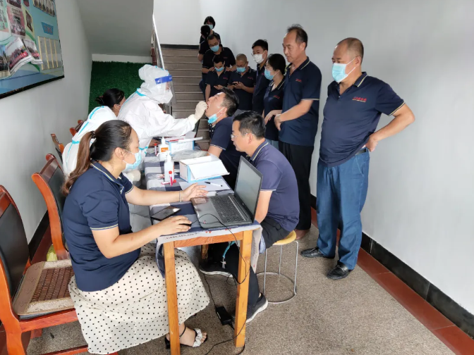 上午10:30全體員工有秩序的排隊等待檢測,公司2名行政人員負責登記、1名社區工作者在現場宣傳引導,僅用半小時完成公司所有員工的核酸檢測任務,為企業安心發展提供強力支持和貼心服務。