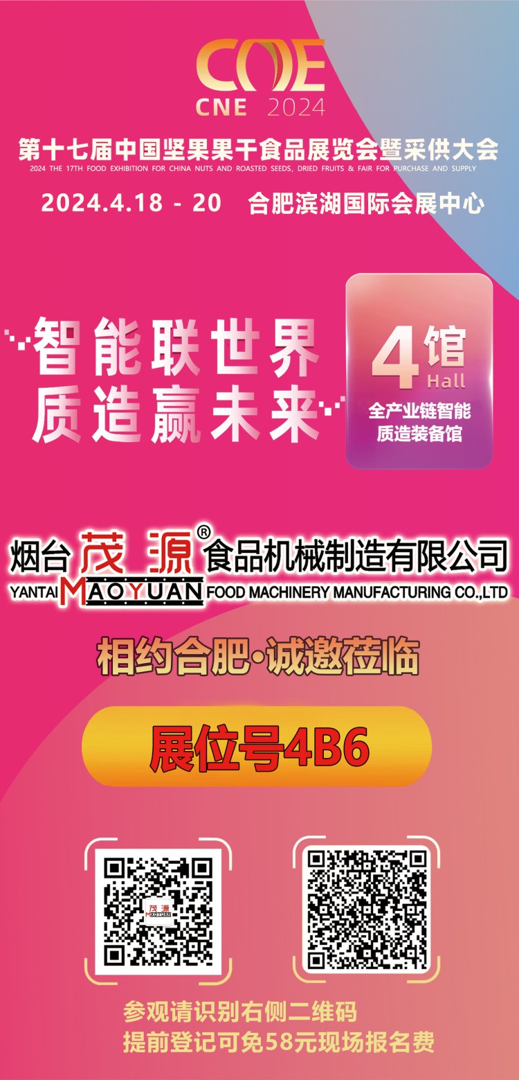 4月18-20日,茂源食品機械邀您蒞臨第十七屆中國堅果炒貨展