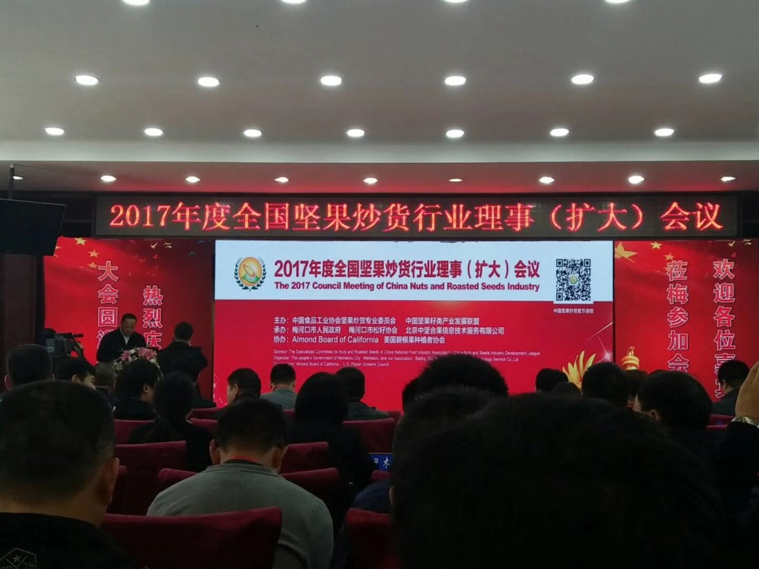 由中國食品工業協會堅果炒貨專業委員會主辦的“2017年度全國堅果炒貨行業理事會(擴大)會議”,于2017年10月23日—25日在吉林梅河口市召開。出席此次會議的代表有:協會執行會長、副會長、全體理事單位;梅河口市政府、廣西龍州縣政府、云南臨滄縣政府有關部門領導以及吉林省有關市縣的領導;出席的有關部門還有國家食藥監總局三司、吉林省食品安全質量檢驗檢測所,以及美國、俄羅斯、越南、巴基斯坦等國家堅果協會、企業代表,共計500余人參加了會議。