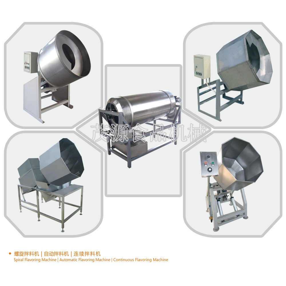 拌料機是與油炸生產過程中的其它設備配合使用,廣泛應用于油炸花生、蠶豆等顆粒物料與調味輔料的混合,也可應用于食品行業其他物料與添加劑的混合。該機拌料柔和、分散均勻、自動拌料、自動出料、操作方便,是適用于食品行業生產過程中物料混合的設備。