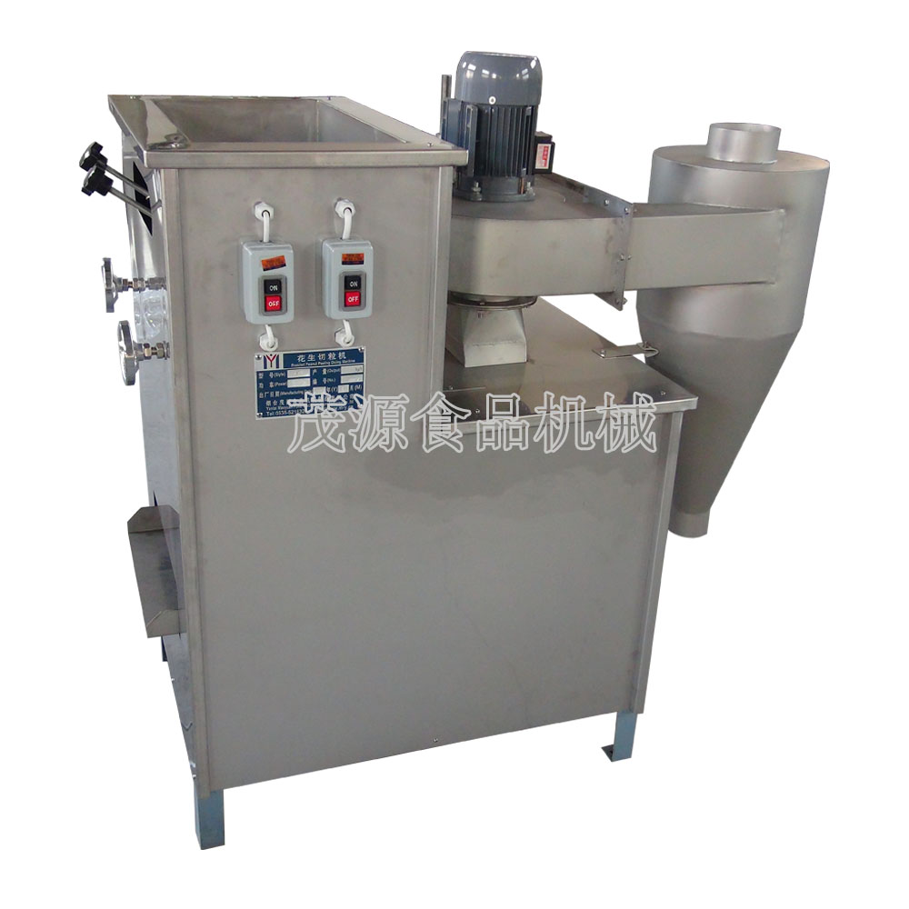 本機采用差速滾動摩擦傳動帶工作原理,花生米經烘烤后水分小于5%(避免烤糊)時進行脫皮,抽風系統將皮吸走,是花生仁與紅衣自動分開,具有性能穩定可靠,使用壽命長,去皮效果好,生產效率高,破碎率高,質量可靠等優點。